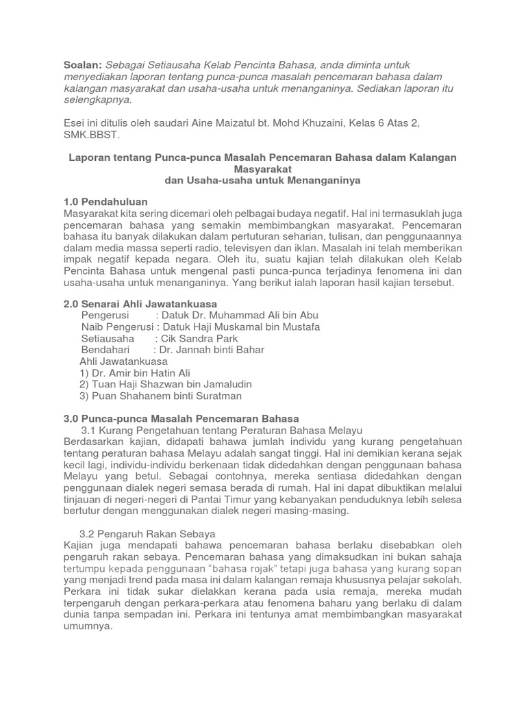 . Contoh Karangan Bahasa Melayu BM PT3 Tingkatan 1 2 3. Kertas 1 Bahasa Melayu Mulai tahun 2021 Kertas 1 mata pelajaran Bahasa Melayu dalam peperiksaan SPM 11031 akan menggunakan format baharu. Cara pelaksanaannya ialah dengan melakukan temu bual secara lisan dan jawapan direkod oleh penyelidik secara bertulis melalui rakaman elektronik.